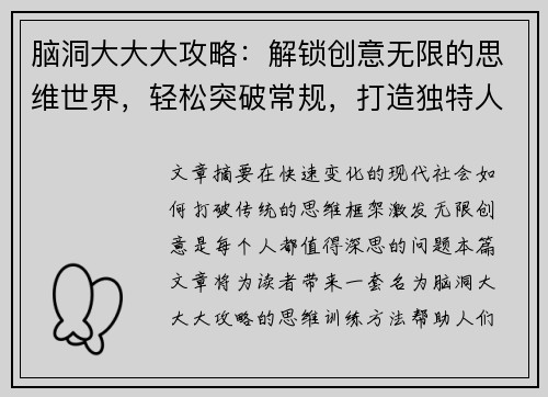 脑洞大大大攻略:解锁创意无限的思维世界,轻松突破常规,打造独特人生设计方案